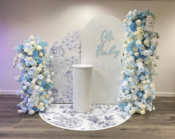 White rippled backdrop, half arch, floor print, backdrop print, floral towers, custom cutout*cake stand optional (+$80)*delivery and installation is not... Read more